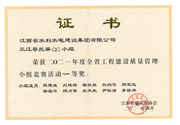 近日,2021年度江西省工程建設(shè)質(zhì)量管理小組競賽活動公布名次,由公司三江導(dǎo)托渠QC小組開展的QC活動榮獲小組競賽活動一等獎。該獎項(xiàng)的獲得,為公司工程創(chuàng)優(yōu)奠定了堅(jiān)實(shí)的基礎(chǔ),為公司爭得了榮譽(yù),今后,江水建設(shè)將繼續(xù)深入開展QC活動,秉承工匠精神推動質(zhì)量提升,打造更多精品工程,為樹立集團(tuán)公司品牌形象繼續(xù)努力。