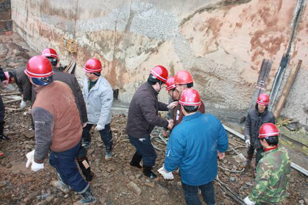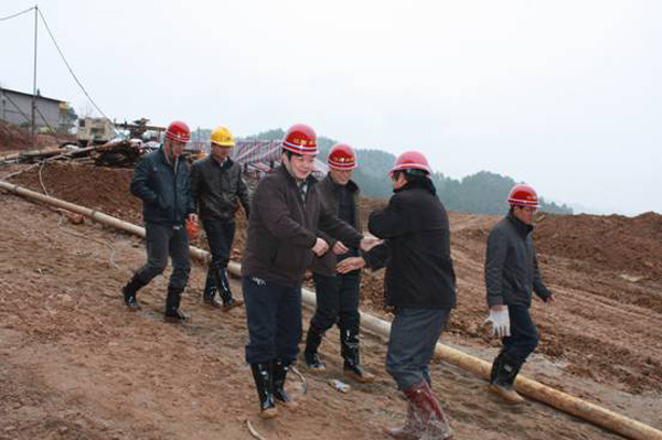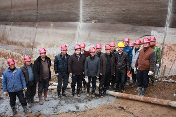 董事長(zhǎng)、總經(jīng)理王元旦一行首先來(lái)到基坑澆筑、混凝土攪拌站等施工現(xiàn)場(chǎng)進(jìn)行察看,與施工人員一一握手,并聽(tīng)取了春節(jié)期間帶領(lǐng)員工奮戰(zhàn)在施工一線(xiàn)的公司副總經(jīng)理聶玉和的生產(chǎn)情況匯報(bào)。董事長(zhǎng)、總經(jīng)理王元旦詳細(xì)詢(xún)問(wèn)了攪拌站的生產(chǎn)能力能否滿(mǎn)足施工要求,工程的進(jìn)展情況及后期施工中的各項(xiàng)措施,對(duì)項(xiàng)目部全體員工放棄節(jié)假日搶工期、保質(zhì)量、抓進(jìn)度的奉獻(xiàn)精神給充分肯定和高度評(píng)價(jià),他勉勵(lì)大家保證質(zhì)量安全的前提下,抓緊時(shí)間完成大壩防滲面板的施工、再苦再累也要咬緊牙關(guān)挺過(guò)去,并要求施工項(xiàng)目部合理安排好大家春節(jié)期間的工作和生活。