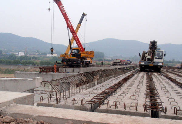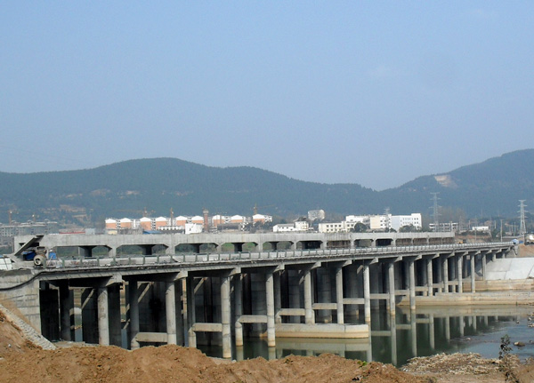 我公司2010年承建的大型市政災后重建工程——四川省鹽亭縣梓江河橋閘工程,由兩座長270M,寬11.5M的橋梁夾一座大型水閘構(gòu)成。水閘全長202M,13孔×12M寬,采用6M×12M大型平板閘門,水閘50年一遇洪水下泄流量為7260M3/S,屬于大(I)型水閘項目工程。鹽亭縣梓江河橋閘工程現(xiàn)已按合同工期完工,正待驗收,它的建成將極大地提升鹽亭縣新城區(qū)“城在水中,水邊有城” 的新景象,成為鹽亭縣城市建設(shè)一道靚麗的風景線。
