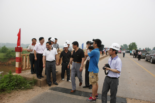 吉安市委、市政府,峽江縣、項(xiàng)目監(jiān)理、設(shè)計(jì)代表及我公司副總經(jīng)理曾朝文等陪同調(diào)研。