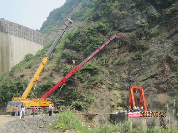 我司施工人員進行導流隧洞封堵閘門下閘作業(yè)
