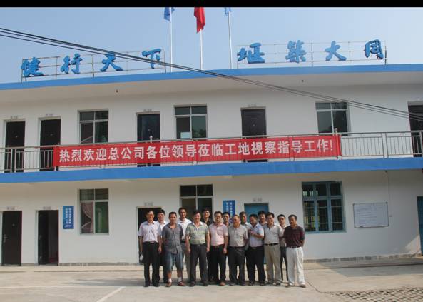 董事長、總經(jīng)理王元旦到樟山防護工程項目部檢查指導工作,并在項目部生活樓前與相關(guān)人員合影