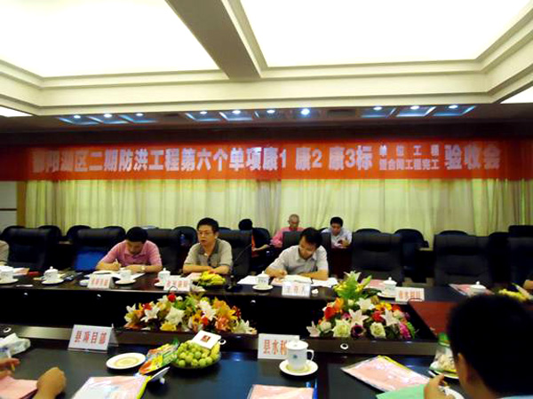 參加驗收會的單位有:省河湖局、上饒市城防處、省水利規(guī)劃設(shè)計院、余干縣水利局、余干縣建設(shè)項目部、上饒市水利水電建設(shè)工程監(jiān)理中心、杭州慶達工程監(jiān)理咨詢有限公司、省水利廳水利工程建設(shè)質(zhì)量與安全監(jiān)督中心站、楓富聯(lián)圩管理局、康山大堤管理局。我司副總經(jīng)理胡鴻煌等代表公司參加了驗收會。