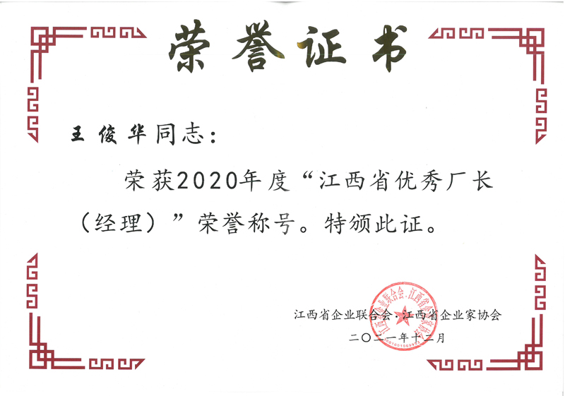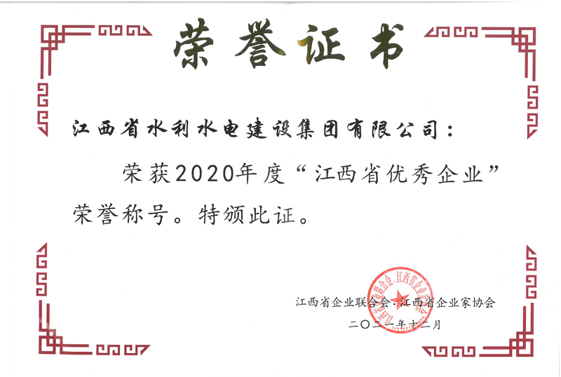 近日,江西省企業(yè)聯(lián)合會、江西省企業(yè)家協(xié)文件《關(guān)于表彰“2020年度新時代江西杰出企業(yè)家、江西省優(yōu)秀企業(yè)、江西省優(yōu)秀企業(yè)家、江西省優(yōu)秀廠長(經(jīng)理)”的決定》公布了2020年度江西省優(yōu)秀企業(yè)等獎項的評選結(jié)果。集團獲評江西省優(yōu)秀企業(yè);集團董事長王元旦獲評新時代江西杰出企業(yè)家;集團常務(wù)副總裁王俊華獲評江西省優(yōu)秀廠長(經(jīng)理)。至此,集團已連續(xù)二十二年被評為“江西省優(yōu)秀企業(yè)”。榮譽是一種肯定,更是一種責(zé)任,集團將以此為動力,新的一年再接再厲,繼續(xù)以優(yōu)秀水利龍頭企業(yè)的標(biāo)準(zhǔn)嚴(yán)格要求自己,不斷超越自我,開創(chuàng)企業(yè)發(fā)展多元化新格局,持續(xù)提高市場競爭力和社會影響力。
