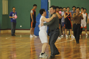 座談會結(jié)束后,大家乘車前往恒大體育館,活動的第一項內(nèi)容是公司領導和青年員工共同完成的團隊拓展游戲——“齊腳并進”和“心心相印”兩項接力比賽。比賽過程中,公司領導和青年員工們熱情高漲,目標明確,心往一處想,勁往一處使,充分發(fā)揮團隊協(xié)作精神,爭分奪秒完成各項任務,布滿汗水的笑臉在燈光下熠熠生輝,加油鼓勁和歡呼祝賀聲響成一片。拓展游戲項目結(jié)束,大家還進行了籃球友誼賽和羽毛球比賽。