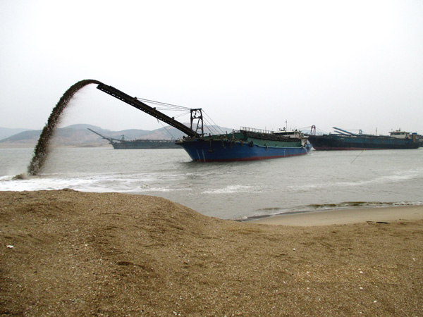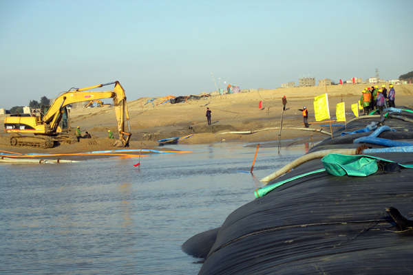 大型疏浚船吹填作業(yè)