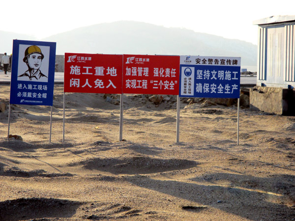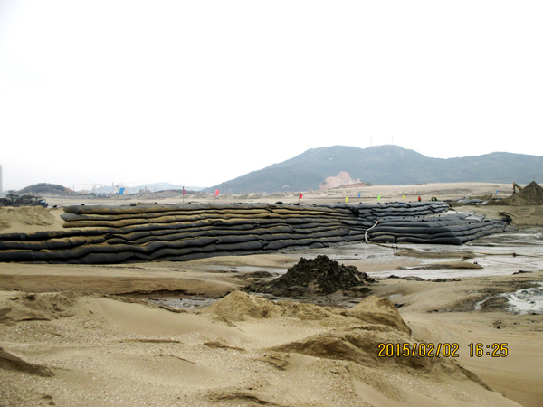 平潭綜合實(shí)驗(yàn)區(qū),主島為海壇島,位于福建省東部,與臺(tái)灣隔海相望,是中國大陸距離臺(tái)灣島最近的地方,是中國第五大島,有福建的“馬爾代夫”之稱。平潭綜合實(shí)驗(yàn)區(qū)如意湖防潮閘工程項(xiàng)目總投資1.3億元,我公司承建的土建工程包括排澇閘、防潮閘、公路橋、上下游兩岸翼墻、防沖消能、控制房等土建工程施工(含導(dǎo)流明渠開挖、圍堰填筑)。平潭(簡稱嵐)年平均風(fēng)速超過五級(jí)以上,大風(fēng)呼嘯,沒來這里感受不到風(fēng)有多大!依據(jù)工程設(shè)計(jì)及進(jìn)度要求,在落差8m潮汐中的軟基上進(jìn)行圍堰模袋充砂以截流海水,在惡劣地質(zhì)條件的海中建閘,與潮水賽跑、跟臺(tái)風(fēng)搶工期,潮起潮落,給工程建設(shè)平添了許多艱難與艱辛。