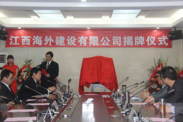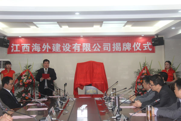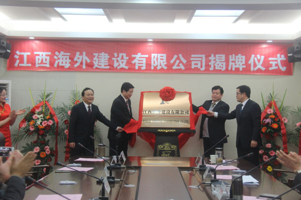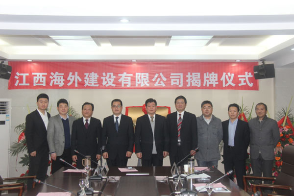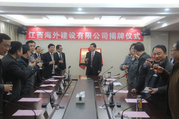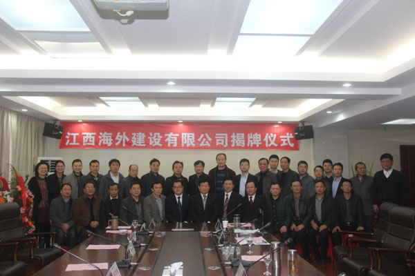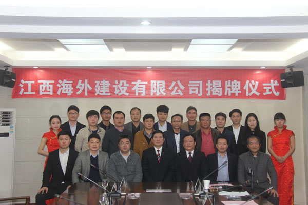 隨后,伴隨著歡樂喜慶的歌曲,總公司董事長王元旦,總經(jīng)理徐洪良與江西海外建設(shè)有限公司執(zhí)行董事張周平,總經(jīng)理黃鄭民為新公司揭牌并合影留念。
