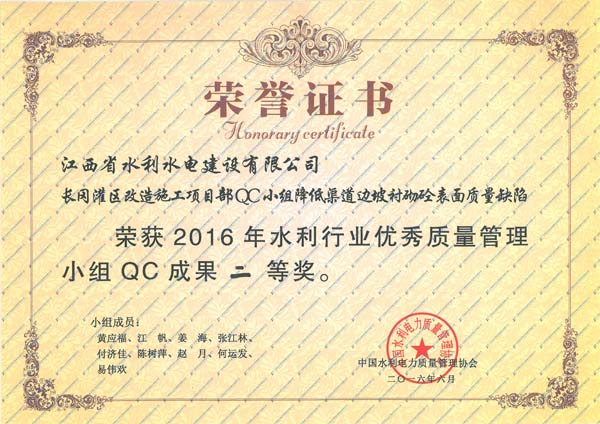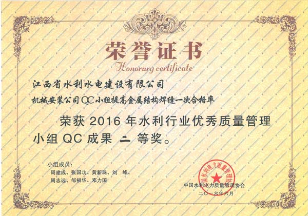 2016年6月20日至24日,中國水利電力質量管理協(xié)會水利分會在安徽省安慶市,舉辦了2016年水利行業(yè)優(yōu)秀質量管理小組成果發(fā)表會,并在本次發(fā)表會上發(fā)布了156項QC成果。中國水利電力質量管理協(xié)會水利分會組織評審專家,對發(fā)表的QC成果進行了現(xiàn)場評審,對經(jīng)評審獲得一、二等獎的單位進行了表彰。本次成果發(fā)表會上,我公司共有3項QC成果獲一等獎,兩項QC成果獲二等獎,成績較往年有較大幅度提高。