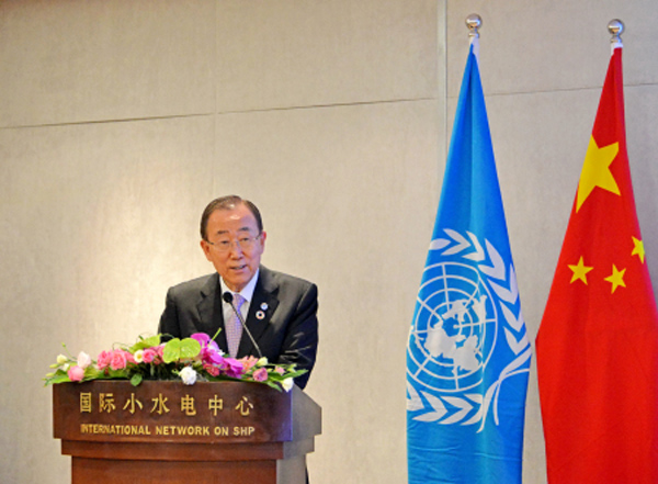 集團(tuán)資訊 7月9日上午,聯(lián)合國秘書長潘基文出席了由聯(lián)合國開發(fā)計劃署、聯(lián)合國工發(fā)組織、國際小水電中心共同舉辦的“應(yīng)對氣候變化南南合作主題會”,并發(fā)表重要講話,會議在國際小水電中心舉行。聯(lián)合國副秘書長吳紅波、中國駐聯(lián)合國代表劉結(jié)一大使等陪同出席。