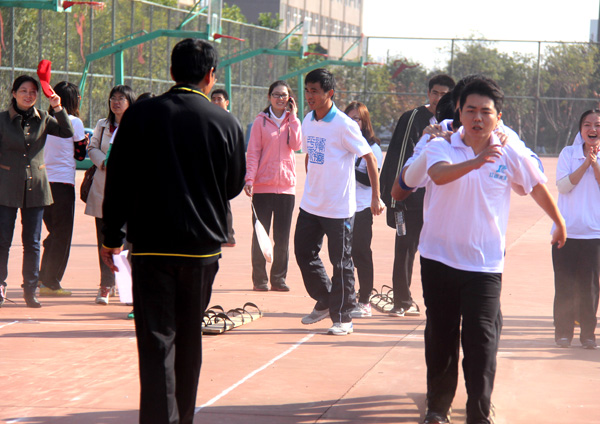 本屆趣味運動會以“快樂運動?健康生活”為主題,共設(shè)排山倒海、袋鼠跳、夾球接力、同舟共濟、綁腿接力、險灘接力、呼啦圈接力、4×100米接力等八個比賽項目。我公司選派的37名運動員參加了全部8個比賽項目,并取得了同舟共濟、袋鼠跳兩個項目第一名,夾球接力項目第二名,以及呼啦圈接力、排山倒海、4×100米接力三個項目第三名的好成績。我公司以6塊獎牌總數(shù)在十支參賽隊伍中名列獎牌榜第一。
