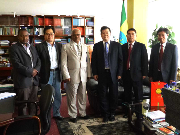 為強(qiáng)化公司國(guó)際化發(fā)展戰(zhàn)略,2013年11月19日,公司董事長(zhǎng)兼總經(jīng)理王元旦、副總經(jīng)理徐洪良飛抵埃塞俄比亞首都亞的斯亞貝巴,對(duì)埃塞分公司開(kāi)拓國(guó)際市場(chǎng)進(jìn)行慰問(wèn)和指導(dǎo)工作。