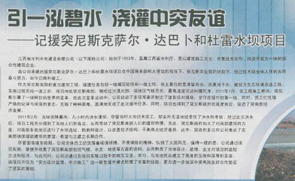 由公司承建的援突尼斯克薩爾?達巴卜和杜雷水壩項目在中國商務(wù)部和大使館的領(lǐng)導(dǎo)下、突尼斯農(nóng)業(yè)部的協(xié)助下,經(jīng)過技術(shù)組全體人員的共同奮斗努力,如今已順利竣工。