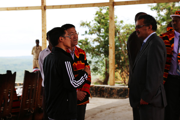 結(jié)束對(duì)我公司KURAZ項(xiàng)目視察后,覃儉參贊一行返回阿巴門奇市代表中國(guó)駐埃大使出席了阿巴門奇市建市50周年慶典活動(dòng)及捐贈(zèng)活動(dòng)。埃塞俄比亞總理海爾瑪里亞姆及埃方外交部長(zhǎng)接見(jiàn)中方一行,并握手致謝。郭惠明主任就江西水建在埃塞俄比亞的發(fā)展情況及南方州KURAZ項(xiàng)目的建設(shè)進(jìn)展情況向埃塞俄比亞總理、外長(zhǎng)作了匯報(bào)?;顒?dòng)結(jié)束后,中方一行還多次分別與南方州政府相關(guān)要員進(jìn)行了會(huì)談。