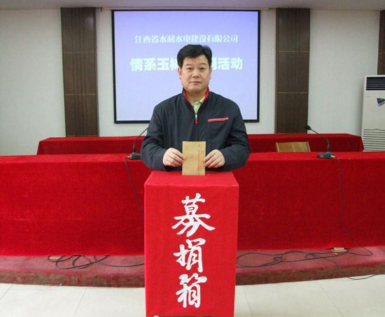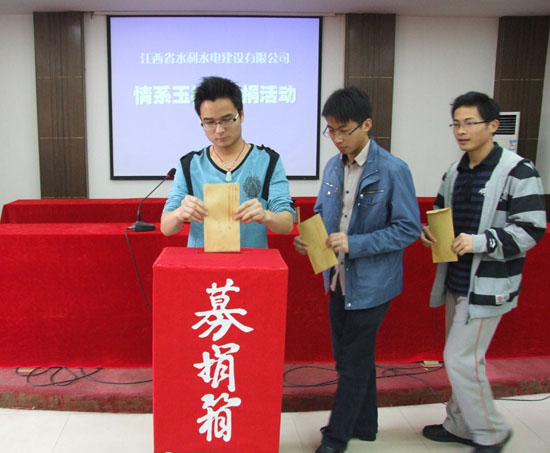 2010年4月14日,青海省玉樹縣發(fā)生兩次地震,最高震級7.1級,造成了當?shù)鼐薮蟮娜松韨龊拓敭a(chǎn)損失,“玉樹地震”牽動著億萬人民的心,也牽動著我司所有員工的心!公司在全司范圍內積極開展“情系玉樹募捐活動”,4月26日,我公司南昌市機關總部首先開展了“情系玉樹募捐活動”,公司中層以上管理人員和員工踴躍參與募捐活動,紛紛獻上自己的一份愛心,體現(xiàn)出江西水總人的社會責任感!同時,各分公司、國內外施工項目部也在開展此項活動,預計此項活動將募得資金3萬余元。