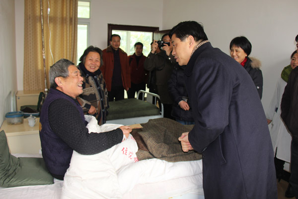隨后,孫廳長一行又來到生活基地職工醫(yī)院慰問。在病房內(nèi),孫廳長看望了躺在病床上的兩位退休老職工,詳細(xì)詢問了老人的病情,希望他們安心治療、早日康復(fù),并送上慰問金。在聽取職工醫(yī)院負(fù)責(zé)人對醫(yī)院工作情況的匯報(bào)后,孫廳長指出,公司有義務(wù)也有責(zé)任讓離退休職工老有所養(yǎng)、病有所醫(yī),職工醫(yī)院要更新理念,加快改革步伐,壯大醫(yī)療技術(shù)隊(duì)伍,更好地解決離退休職工醫(yī)療保健問題。