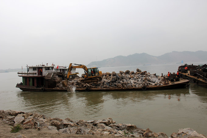 江心洲拋石施工現(xiàn)場(chǎng)