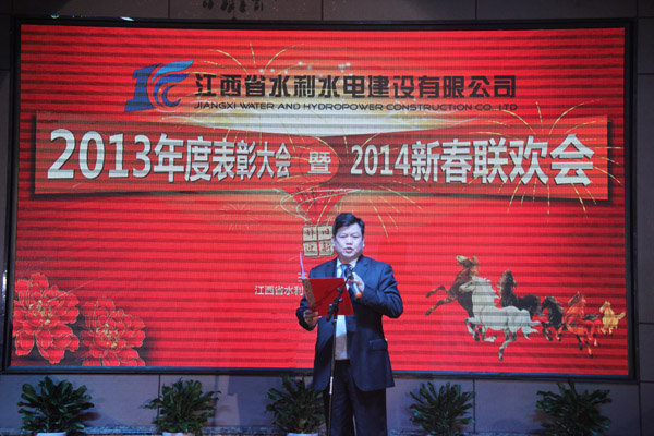 在隨后的新春聯(lián)歡會上,王總發(fā)表了熱情洋溢的新年賀詞,并代表公司董事會和領(lǐng)導(dǎo)班子,向全體員工、支持公司改革發(fā)展的離退休老同志和員工家屬,以及仍堅守在工作崗位的海內(nèi)外一線員工致以節(jié)日的祝福和誠摯的問候。王總在致詞中說,2013年是公司發(fā)展史上不平凡的一年,在公司董事會的正確領(lǐng)導(dǎo)下,全體員工以企業(yè)為家,團結(jié)一心、不畏艱難,腳踏實地、開拓創(chuàng)新,沿著年初制定的各項工作目標(biāo)努力奮進。公司各項事業(yè)繼續(xù)保持蓬勃發(fā)展的良好形勢,朝著質(zhì)量好、品牌優(yōu)、市場廣的集團型企業(yè)方向邁進。2013年,公司開拓進取、勇于突破,準(zhǔn)確定位、大膽決策,利用資本運作境內(nèi)外項目,以投融資帶動市場,在國內(nèi)嘗試承接BT項目,國外則跨行業(yè)進入投資領(lǐng)域,利用投資經(jīng)營提升企業(yè)競爭力。王總指出,公司在2013年取得了一系列優(yōu)秀的成績,兩項省級工法和兩項部級工法通過評審,內(nèi)部管理制度日益健全,爆破資質(zhì)、城市園林綠化資質(zhì)通過審核,在國際工程建設(shè)領(lǐng)域發(fā)展迅速,被譽為江西水利行業(yè)走向世界、開拓國際市場的排頭兵。
