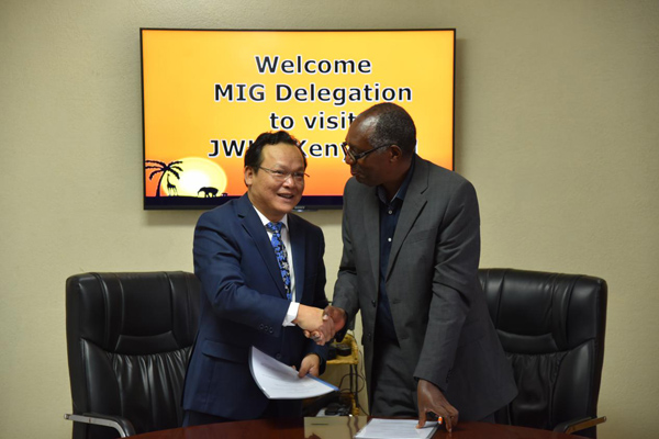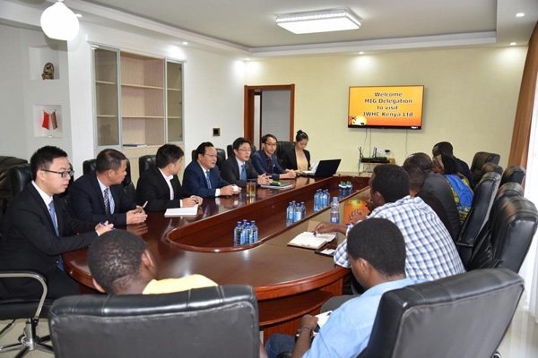 9月23日上午,盧旺達(dá)MIG考察團(tuán)一行來我肯尼亞公司參觀。海外公司總經(jīng)理黃鄭民,肯尼亞分公司總經(jīng)理賀翔,肯尼亞分公司副總經(jīng)理彭紅軍,肯尼亞分公司商務(wù)經(jīng)理黃飛翔,肯尼亞分公司財(cái)務(wù)經(jīng)理程炤宇等參加了會(huì)見。