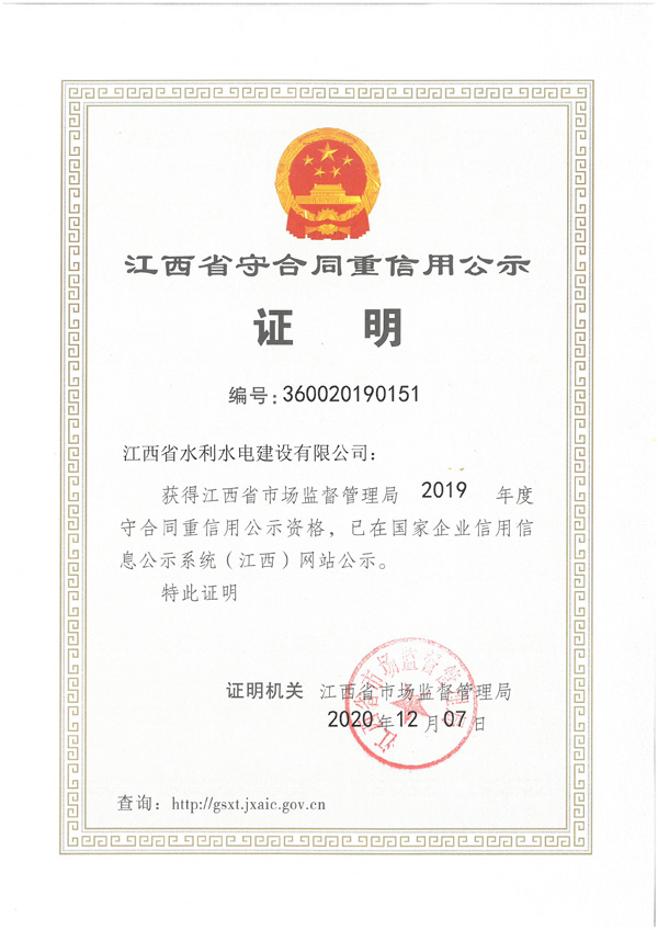 集團(tuán)資訊近日,公司獲評(píng)2019年度江西省守合同重信用公示資格。