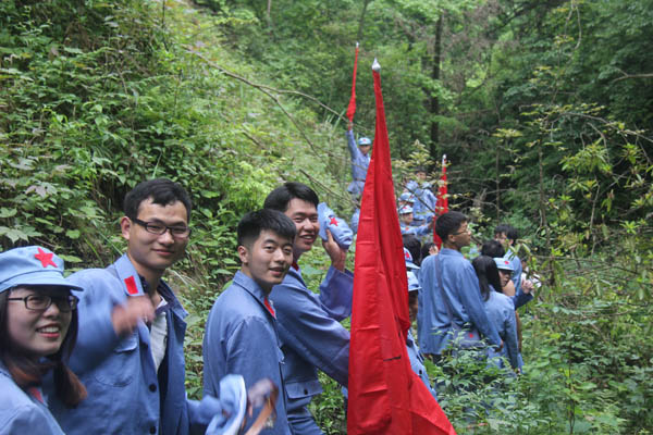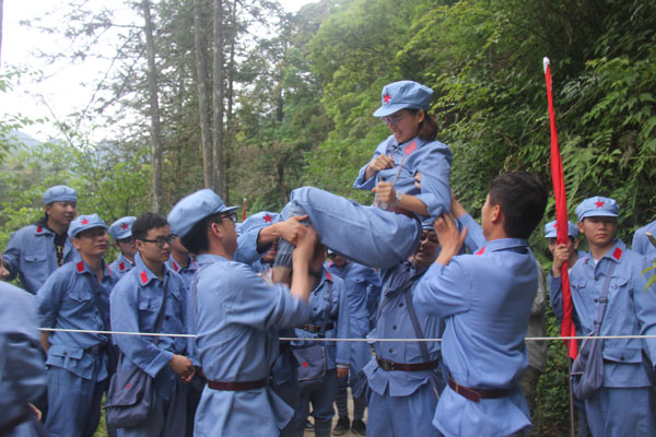 抵達(dá)井岡山后,全體人員立刻進(jìn)入三灣隊(duì)伍整編環(huán)節(jié),推薦隊(duì)長(zhǎng)、政委和旗手,設(shè)計(jì)隊(duì)名、口號(hào)和LOGO。很快“飛龍隊(duì)”、“戰(zhàn)鷹隊(duì)” 等名字紛紛閃亮登場(chǎng)。“龍征萬(wàn)里,所向披靡”、“ 群狼行千里,星火可燎原”等口號(hào)一次又一次迎來(lái)全場(chǎng)的陣陣歡呼。隨后進(jìn)行了“穿越叢林、突破封鎖線、匍匐前進(jìn)、火線救援”4個(gè)比賽項(xiàng)目,這些比賽項(xiàng)目,增強(qiáng)了大家的團(tuán)隊(duì)意識(shí),每名成員充分認(rèn)識(shí)到了團(tuán)結(jié)協(xié)作、友愛(ài)互助的重要性,使大家在比賽中受到啟發(fā)、受到鼓舞、更使大家得到了鍛煉,經(jīng)受了考驗(yàn)。