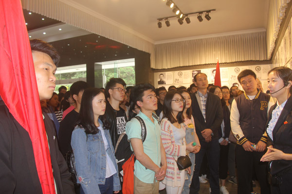 大家認(rèn)真聽(tīng)取講解員講解革命烈士光榮事跡