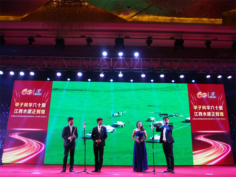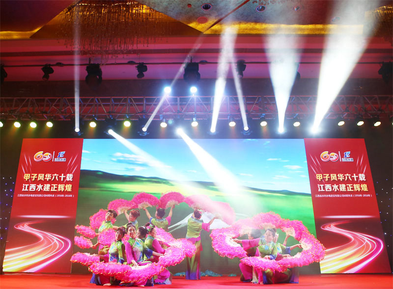 在喜慶熱鬧的開場舞《盛世中華》樂曲聲中,拉開了晚會的序幕,一曲優(yōu)美動聽的《今天是你的生日》,表達了對公司六十華誕的深情祝福,配樂詩朗誦《我驕傲,我是水建人》抒發(fā)了水建人對水利事業(yè)的熱愛與執(zhí)著,舞蹈《我的祖國》,展現了公司退休女職工的精神風采和對公司的深厚感情,男聲獨唱《羅灣那個地方》,喚起了多少“羅灣水建人”曾經在那里生活的記憶,來自上海的退休職工代表,為晚會帶來一首自己改編的歌曲《水建的朋友來相會》,詮釋了他們的激情與夢想,最后,由公司高中層管理人員和總部員工組成的60人大合唱《團結就是力量》,把晚會推向了高潮。團結是我們的力量之源,團結是企業(yè)騰飛的支點,走過了六十年輝煌歷程的江西水建,正在昂首闊步踏上新的征程。讓我們團結起來,以必勝的信心,發(fā)奮的努力,繼承和發(fā)揚老一輩水建人的精神和傳統,擔當起新一代水建人改革創(chuàng)新科學發(fā)展的光榮使命,繼往開來,解放思想,開拓創(chuàng)新,凝心聚力,不斷開創(chuàng)江西水建發(fā)展的新局面,創(chuàng)造更加燦爛的明天!
