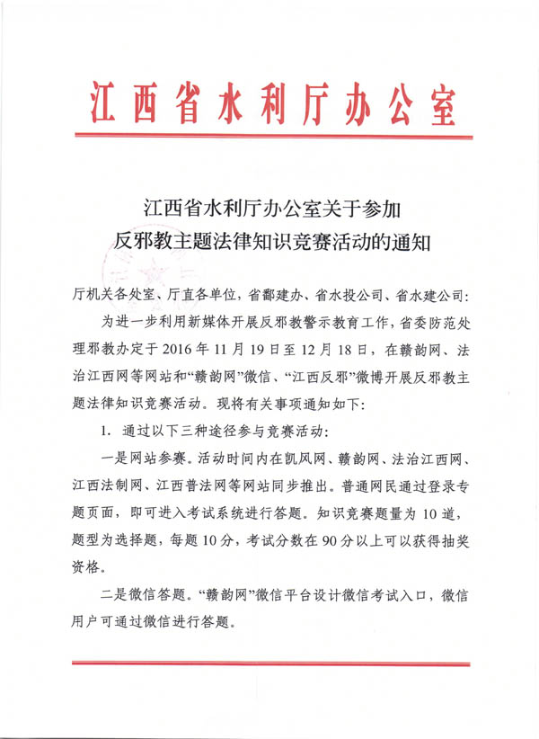 2016年開展反邪教知識(shí)競(jìng)賽的通知