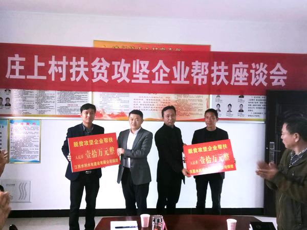 為認(rèn)真貫徹落實(shí)黨的十九大關(guān)于堅決打贏脫貧攻堅戰(zhàn)的新部署新要求,踐行企業(yè)的社會責(zé)任。11月17日,公司副總經(jīng)理王俊華同志率撫州廖坊灌區(qū)二期工程施工總部負(fù)責(zé)人胡福民、項(xiàng)目財務(wù)部負(fù)責(zé)人肖志兵代表江西省水利水電建設(shè)有限公司前往南城縣洪門鎮(zhèn)參加莊上村扶貧攻堅企業(yè)幫扶座談會,并將公司捐助的10萬元扶貧資金送至莊上村村委會。